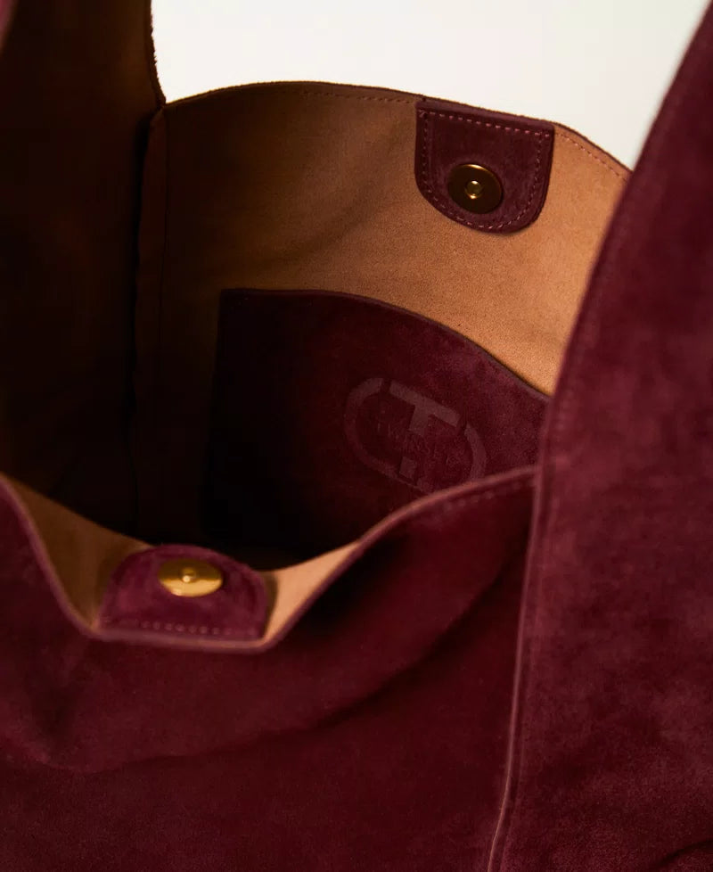 Borsa hobo 'Ventotene' a trapezio in pelle di crosta scamosciata con trattamenti che preservano il colore e l’aspetto della pelle.